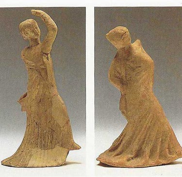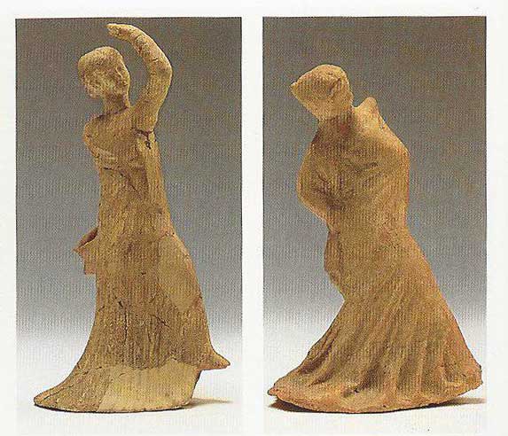 Two Terracotta Statuettes of Dancers, height 15,5 cm, mid 3rd century B.C.E., Museo Archeologico Regionale, Siracusa, Sicilia